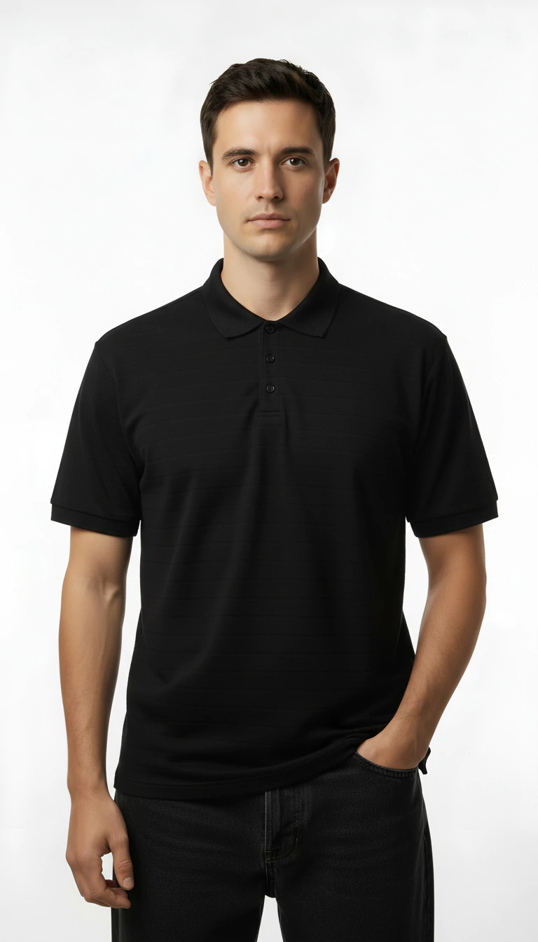 Confeccionada en jersey pique con doble perlé rayado, que asegura una textura suave y duradera.
