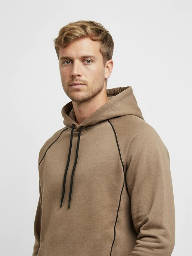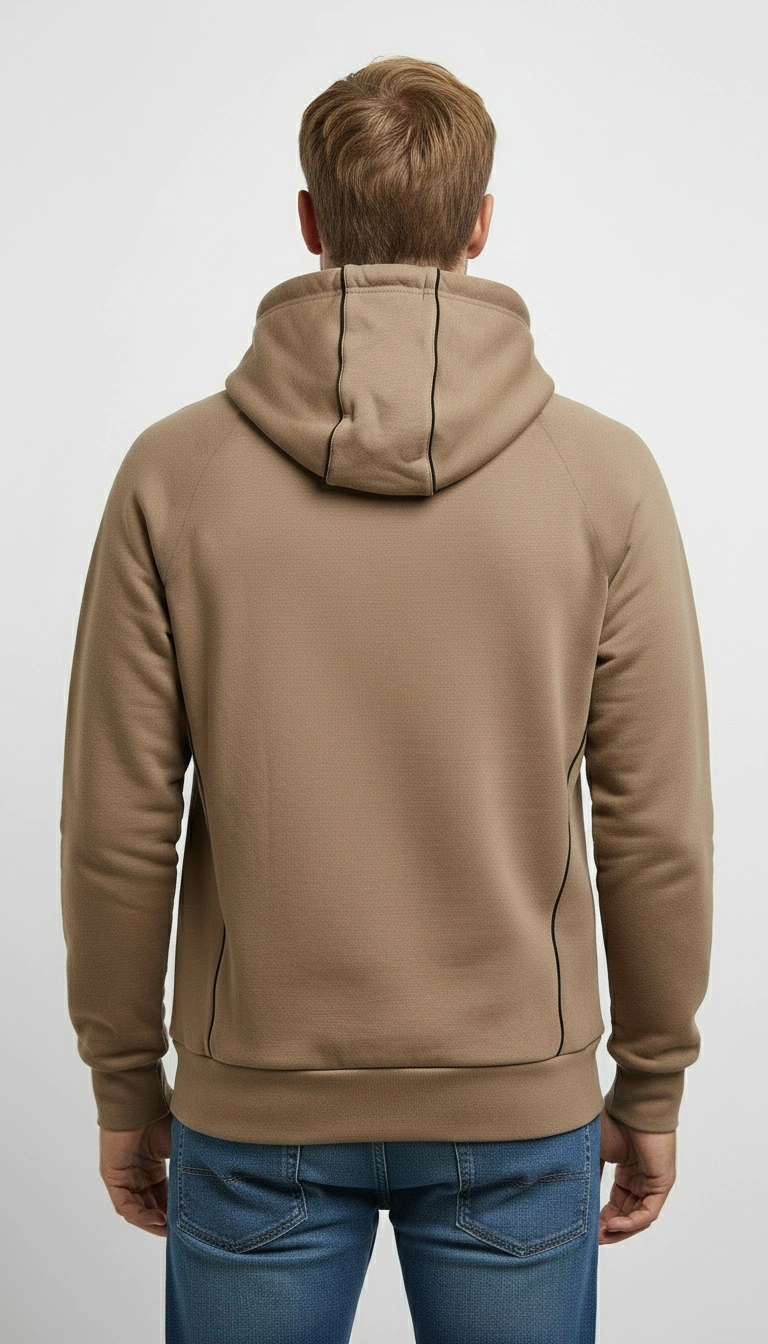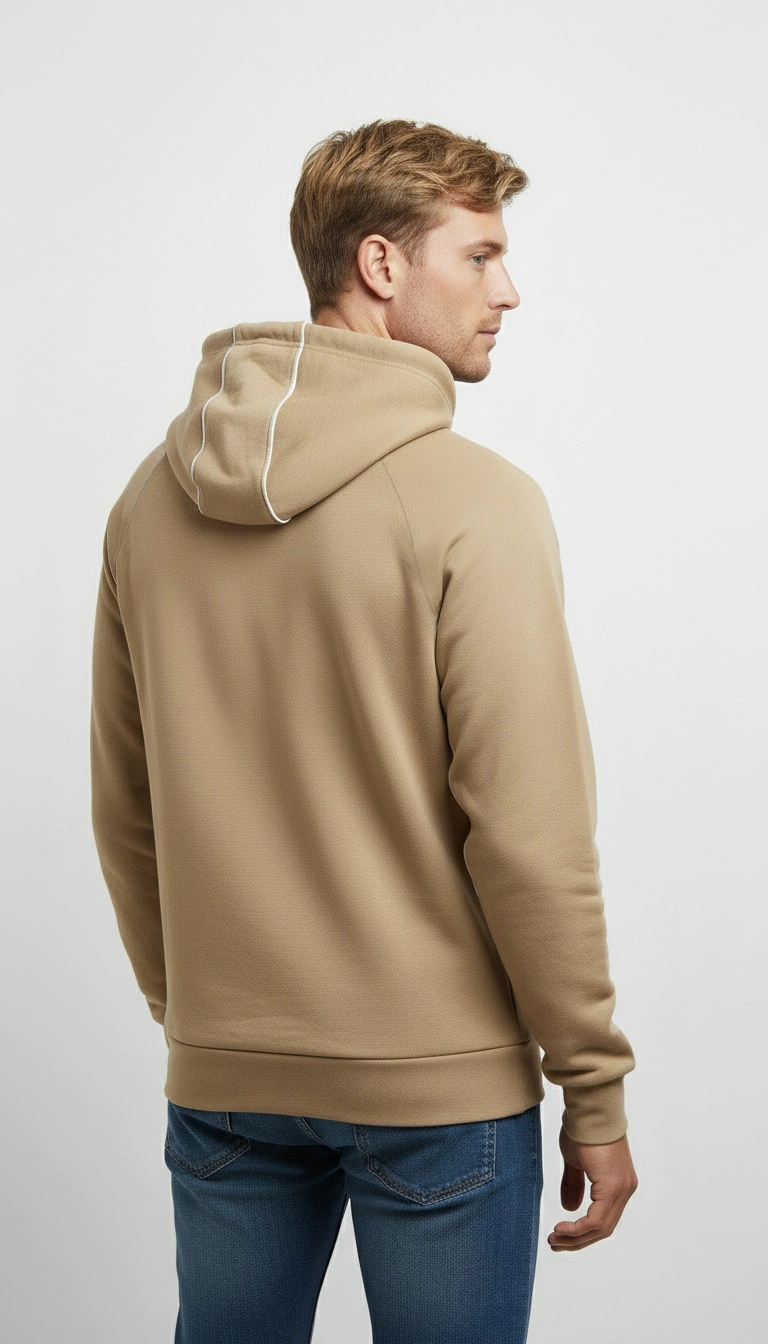 Corte regular con una capucha práctica y un bolsillo canguro oculto para mayor funcionalidad.